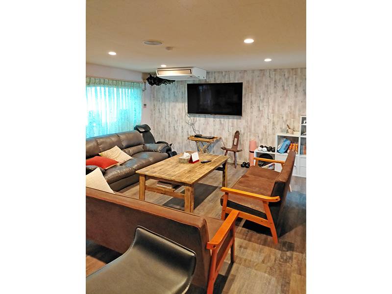 | リビング | 4k60インチTV1、ソファ2、テーブル2、カウンター1、電動マッサージ機 |