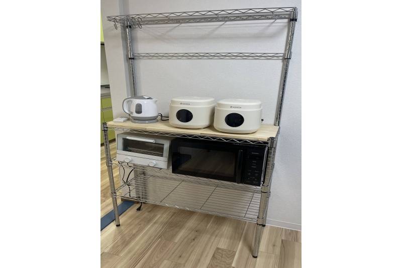 | キッチン | 3口ガスコンロ、電子レンジ、ポット、炊飯器2つ、 |