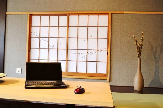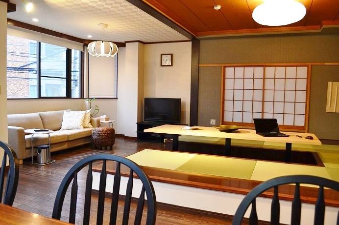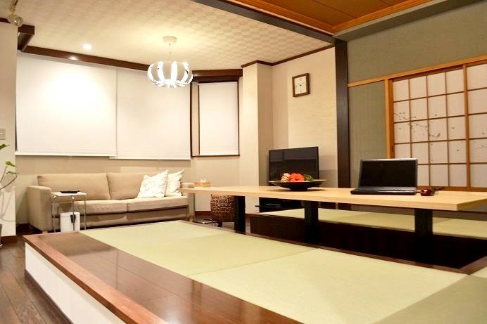 | リビング | ソファ・サイドテーブル・本棚・TV 42インチ・ブルーレイデッキ・掘りごたつ型テーブル・パソコン・カウンター・チェア×4 |