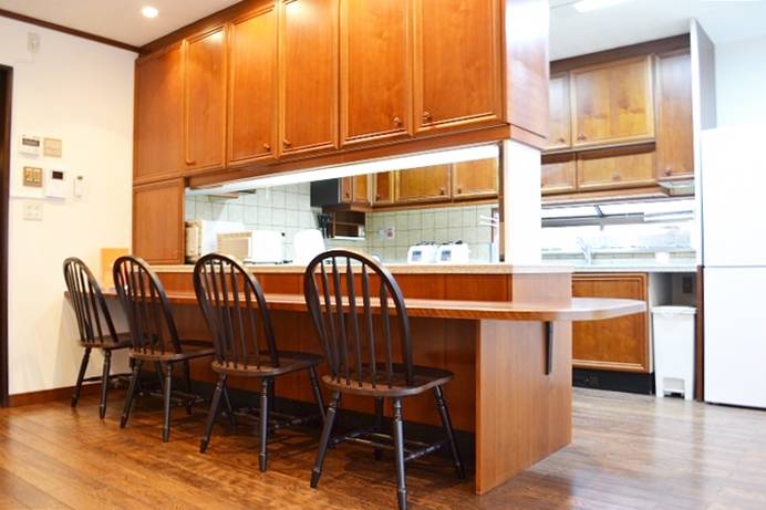 | キッチン | 3口ガスコンロ・冷蔵庫×2・電子レンジ・トースター・湯沸かし器・炊飯器×2・カトラリー・箸・調理器具・各部屋用収納 |