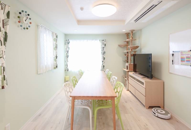 | リビング | 液晶テレビ、チェアー、ダイニングテーブル、エアコン、キャットタワー |