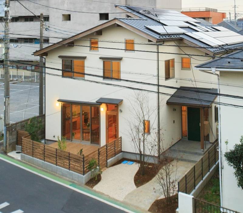 | 備考 | 庭(前庭・中庭ともにウッドデッキ付)、ベランダ、太陽光発電(停電時非常用電源として使用可)、太陽熱給湯システム。 近隣に有料駐車場あり(時間貸300-400円/h、最大1日1,200円、月極6,000円-8,000円/月) キッチンの半分は地域の人たちが料理会などの交流イベントで使用できるコミュニティスペースとして使えるように設計されています(専用入り口、内部との間仕切りがあり、セキュリティに配慮しています)。入居者の方もイベントなどで利用できます。 |
