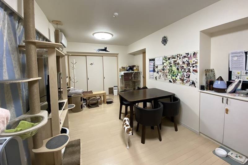 リビングも居室も、猫の為に住みやすいようにオーナーが自分でリノベーションした物件です。これまで猫を飼った事がない方、飼いたいけど忙しい・外出が多い方、ワイワイ楽しく猫と住みたい方、などなど。猫好きさんが集まる楽しいお家です。