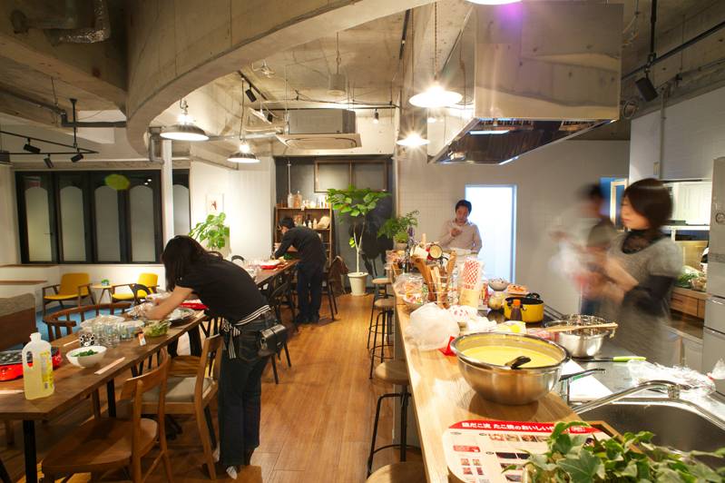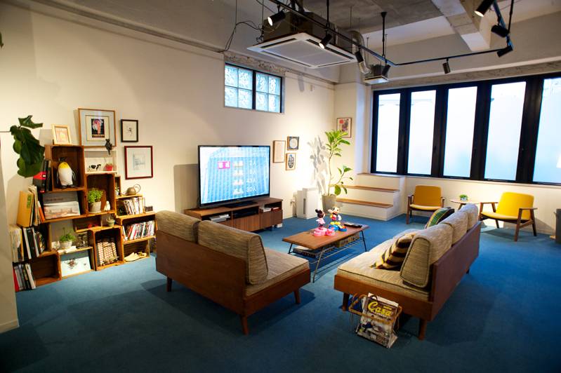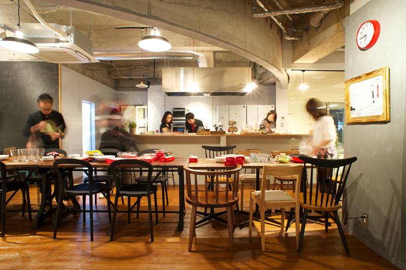 約100帖のコワーキングリビングスペース!広いキッチンだから料理もしやすい!
