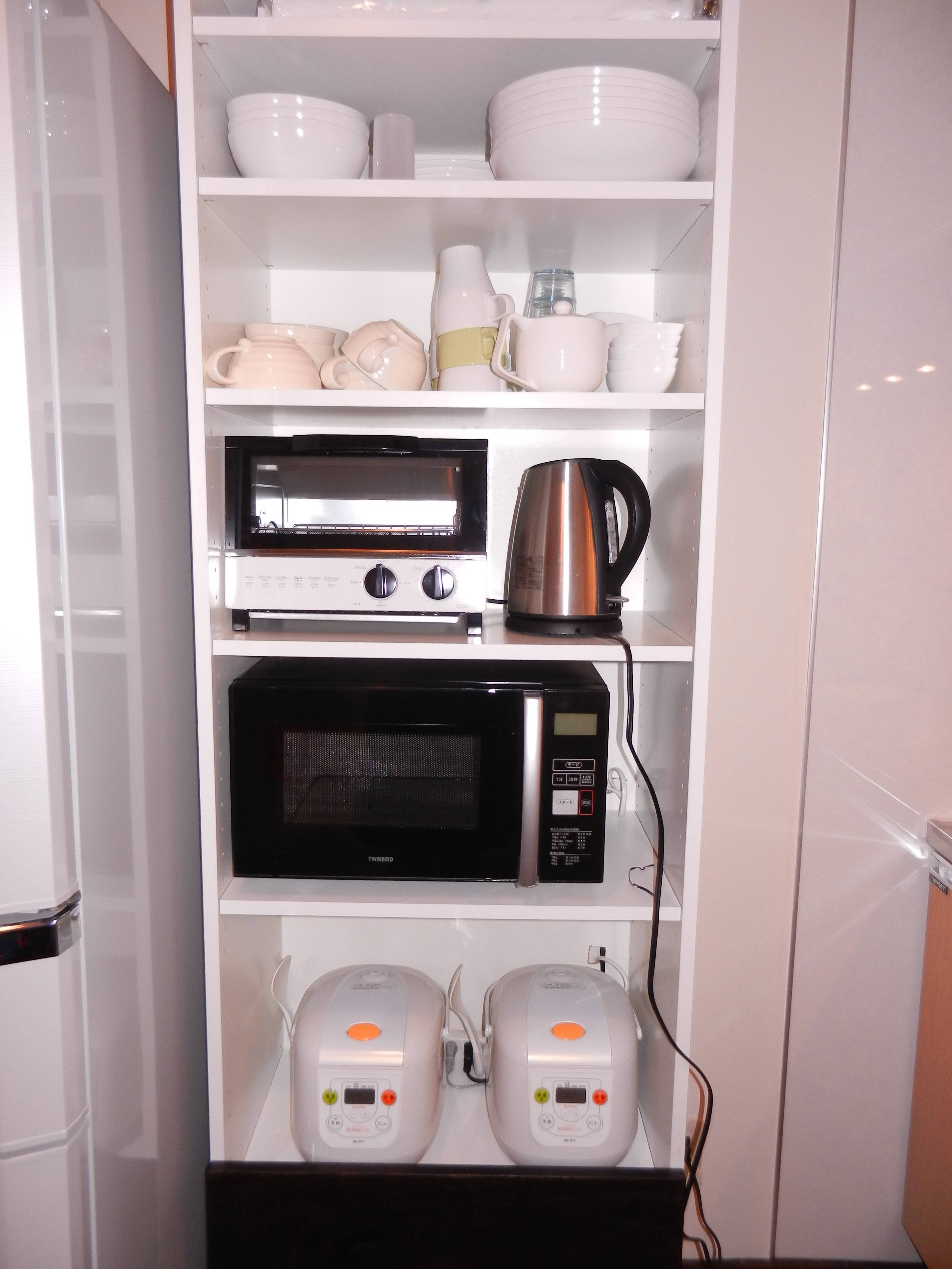 | キッチン | 各階 2口IHコンロ、冷蔵庫、電子レンジ、電気ケトル、トースター、炊飯器各階2、食器一式 |