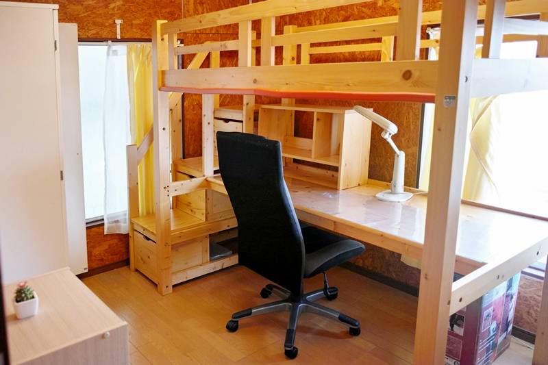 個室にはベッド、冷蔵庫、冷暖房、チェアー、テーブル、Wi-Fiが完備されており、2階の部屋には災害用非難はしごも付いていて安心です。共有スペースも充実しており、洗濯機、ガス乾燥機、バスタブ付きのユニットバス、電子レンジ、トースター、炊飯器、掃除機、アイロン、食器類、鍋類など、生活に必要なものが全て揃っています。敷地内のガーデンは、休憩や読書、日光浴、屋外での喫煙にご利用いただけます(ハウス内は禁煙です)。