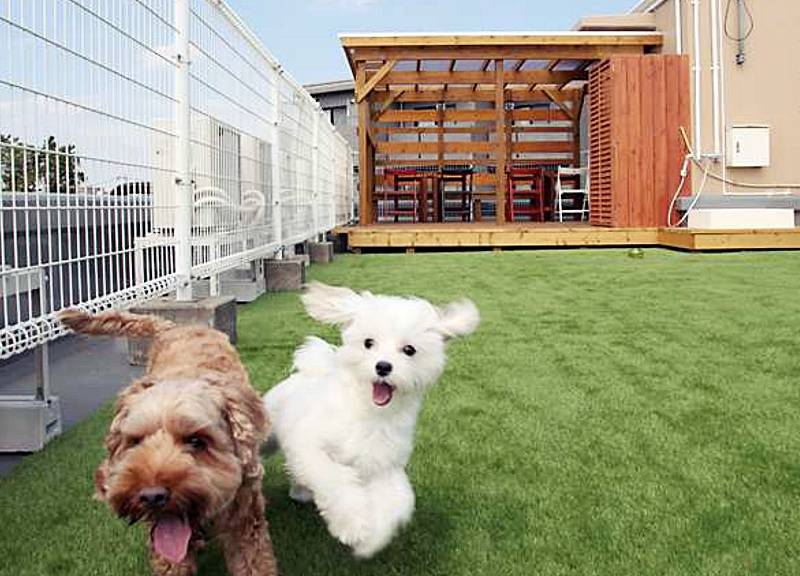 屋上のグリーンテラスは、他の飼い主やワンちゃんと戯れたり。自分で飼うのをあきらめてた人も、同じ家でわんこと暮らせるのは、まさに「シェアハウス」ならでは。