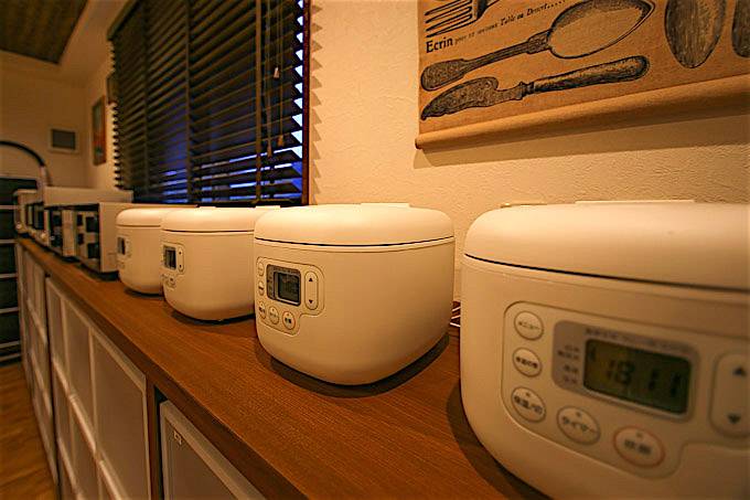 | キッチン | IHコンロ3、オーブンレンジ1、電子レンジ2、オーブントースター2、炊飯器4、冷蔵庫1、電気ケトル2、調理器具、食器、カトラリー |