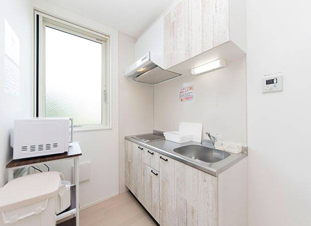 | キッチン | 各階 2口コンロ、電子レンジ、炊飯器、電子ケトル、各種調理器具・食器 |