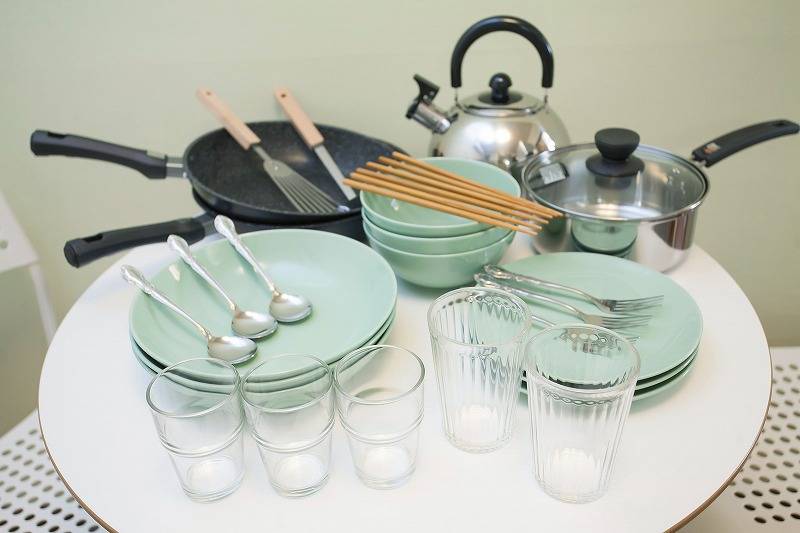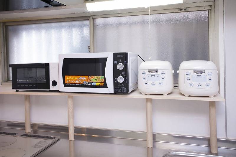| キッチン | 電子レンジ、オーブントースター、炊飯器2台、コンロ、食器一式、調理器具一式 |