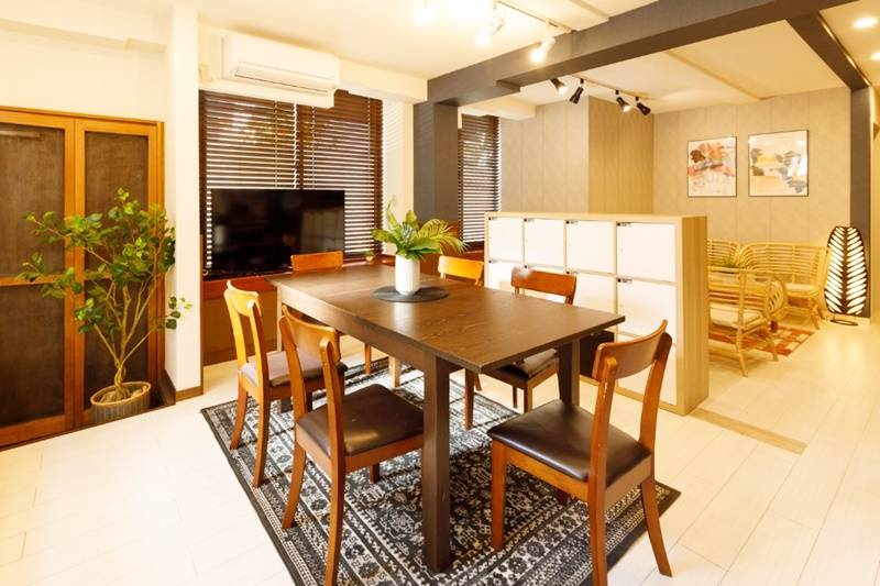 | リビング | 大型テレビ、テーブル、イス |