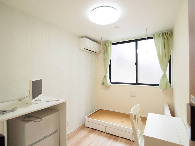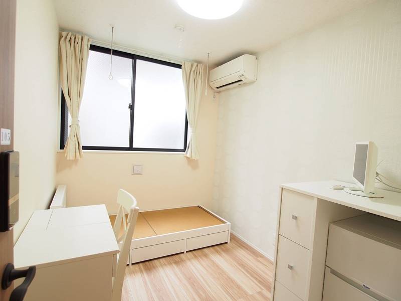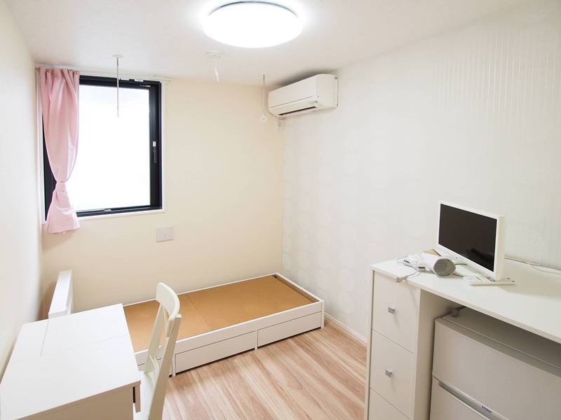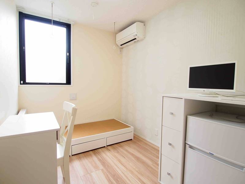 各部屋に冷蔵庫、机・椅子、ベッドフレーム、テレビを備えており、快適に生活できます。洗濯機・乾燥機・シャワーを完備、いずれも無料で利用できます。ウォシュレット、3口ガスコンロ、オーブン機能付き電子レンジ、炊飯器等も完備。Wifiも使い放題です。