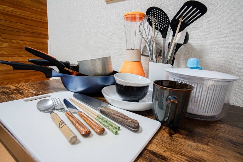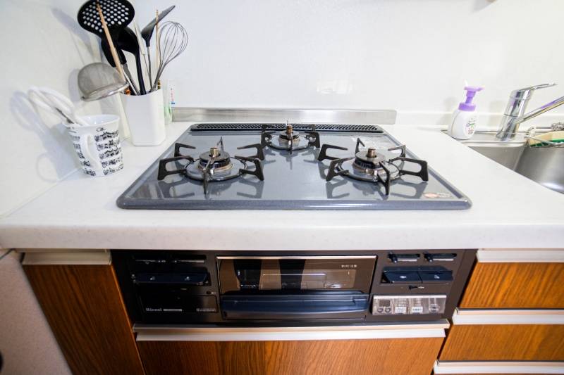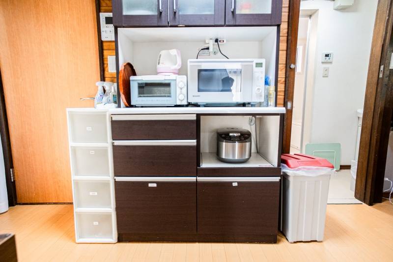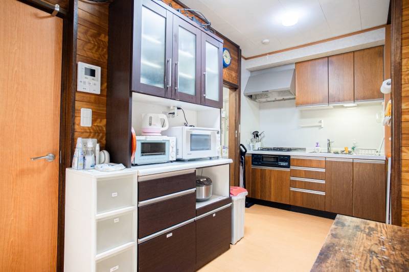 | キッチン | 3口ガスコンロ、冷蔵庫、電子レンジ、オーブントースター、電気瞬間ポット、食器類、調理器具類 |