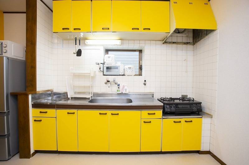 | キッチン | 冷蔵庫2、電子レンジ、オーブントースター、炊飯器2台、3口コンロ、食器一式、調理器具一式 |