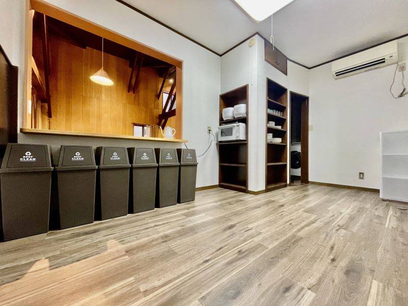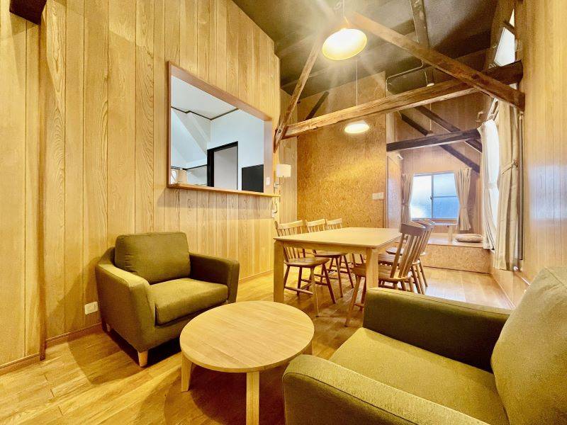木の温もりを感じる共有ラウンジは、ロッジ風でどこか懐かしい落ち着く空間。シェアハウスには珍しい小上がりスペースもあり、1日の仕事の疲れを癒すには最適な場所です。まるで古民家カフェにいるような雰囲気が味わえる空間で趣ある毎日を!