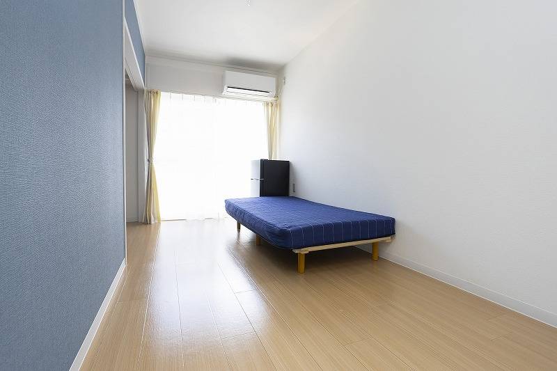 ベッド、エアコン、机、椅子、電源、TVアンテナ、洗濯物干し、全部屋収納、冷蔵庫、等。