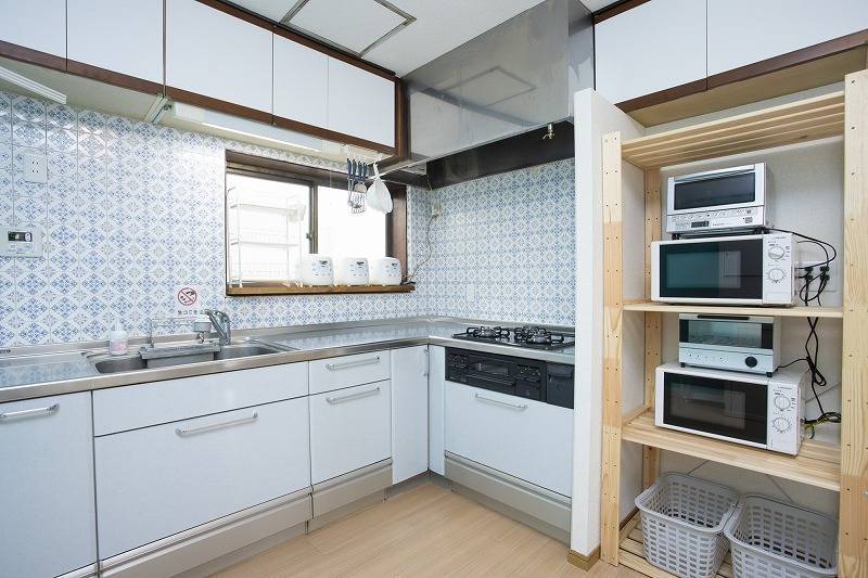 | キッチン | コンロ、調理器具、食器類、電子レンジ2つ、オーブントースター2つ、炊飯器3つ |
