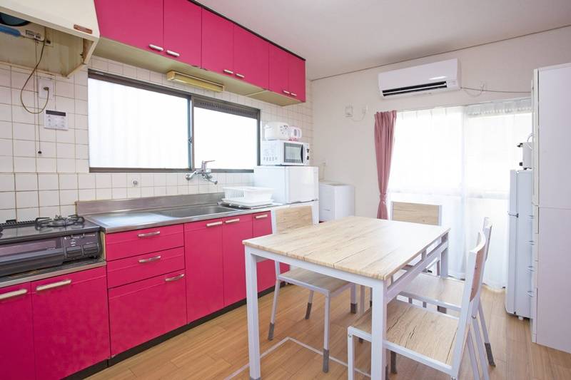 | キッチン | 2口ガスコンロ、電子レンジ、オーブントースター、炊飯器、食器一式、調理器具一式 |